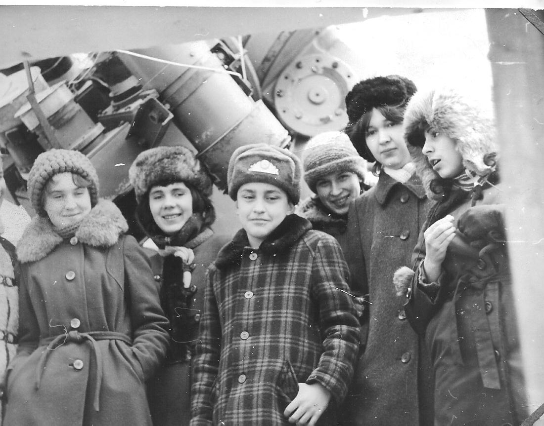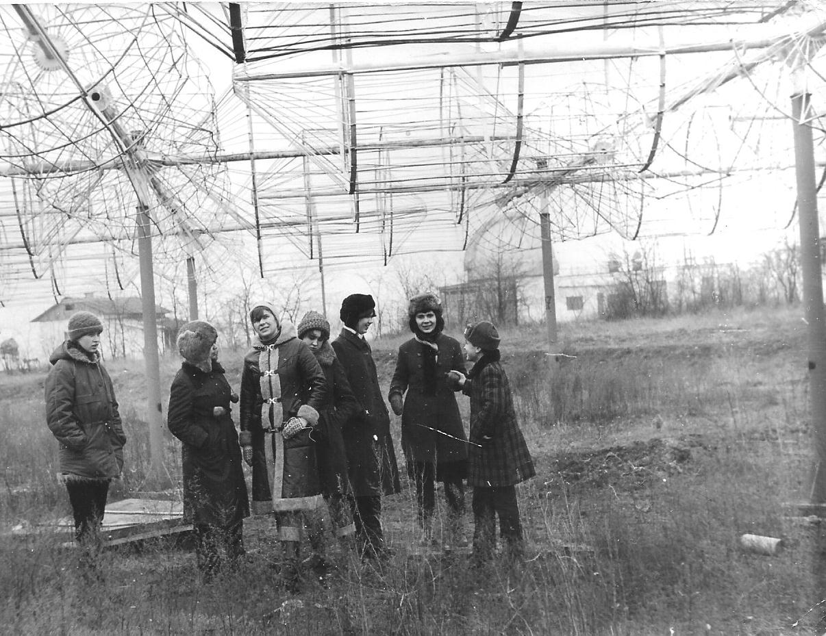 Перші гуртківці, які побували в Маяках, сфотографувалися на пам’ять на фоні радіотелескопу «Уран-4» взимку 1982 року.