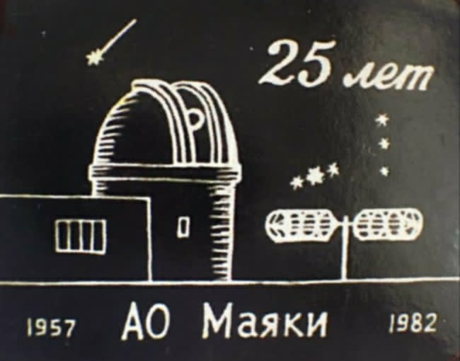 Ювілейний значок, що був випущений до 25-річчя заснування Астрономічної обсерваторії в Маяках (АО Маяки)