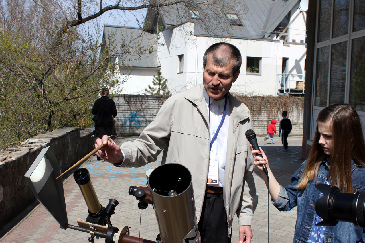 Зрозуміло, що нашим учасникам гуртка «Оріон», які прийшли першими у вісімдесятих роках, до тих, хто займався вже у ХХІ столітті, вдавалося не раз бачити часткові затемнення Сонця. Їх спостерігали і на території планетарію, і на Монастирському острові, чи навіть у себе вдома. Можна було вивести зображення Сонця у телескоп на екран, чи на білий аркуш папера, чи просто дивитися за допомогою спеціального фільтра. А можна було його спроєктувати і побачити ось таким креативним способом.