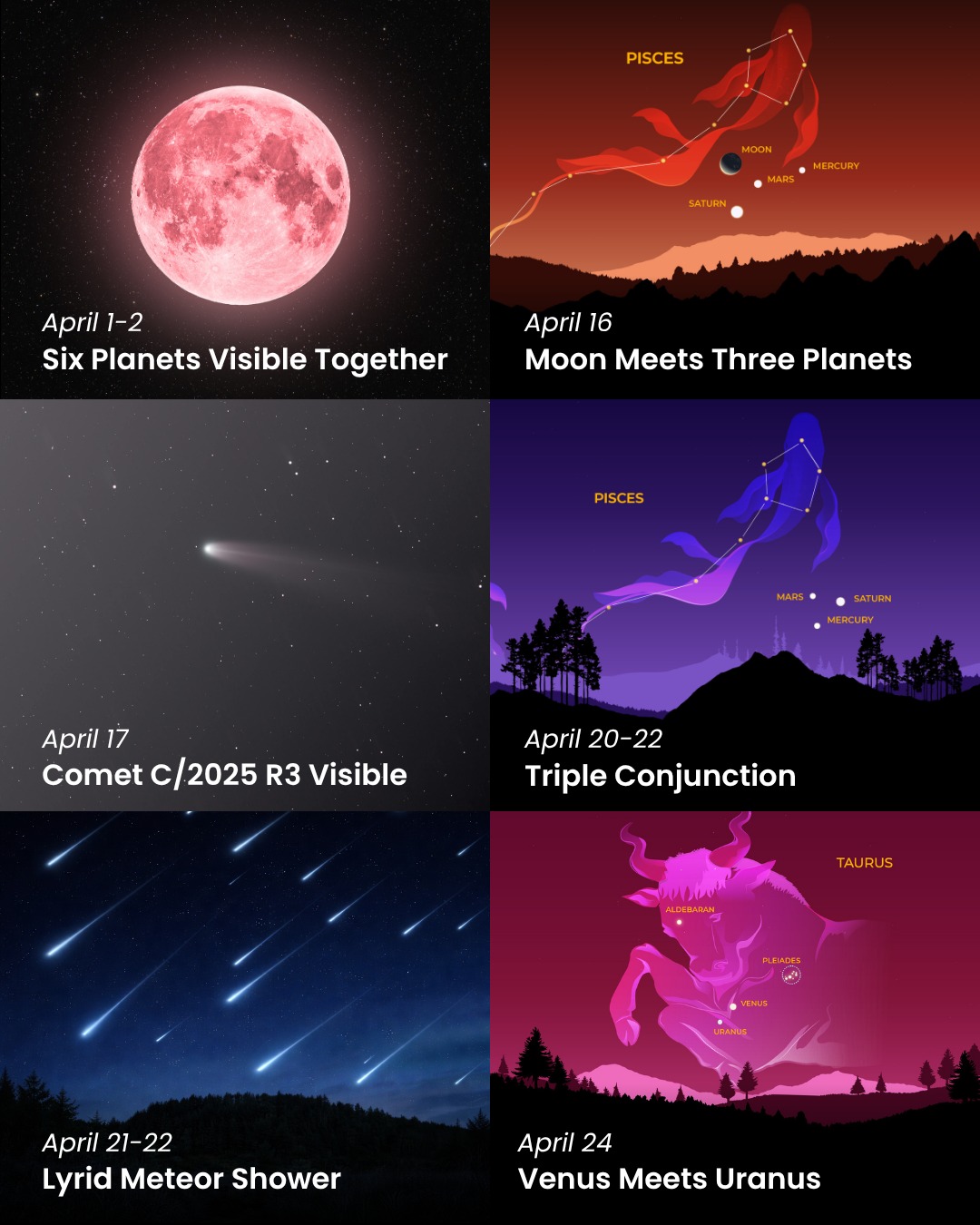 Одна з головних подій квітня 2026 року є поява нещодавно відкритої комети C/2026 A1 (MAPS), яка обіцяє стати «Великою кометою» року.