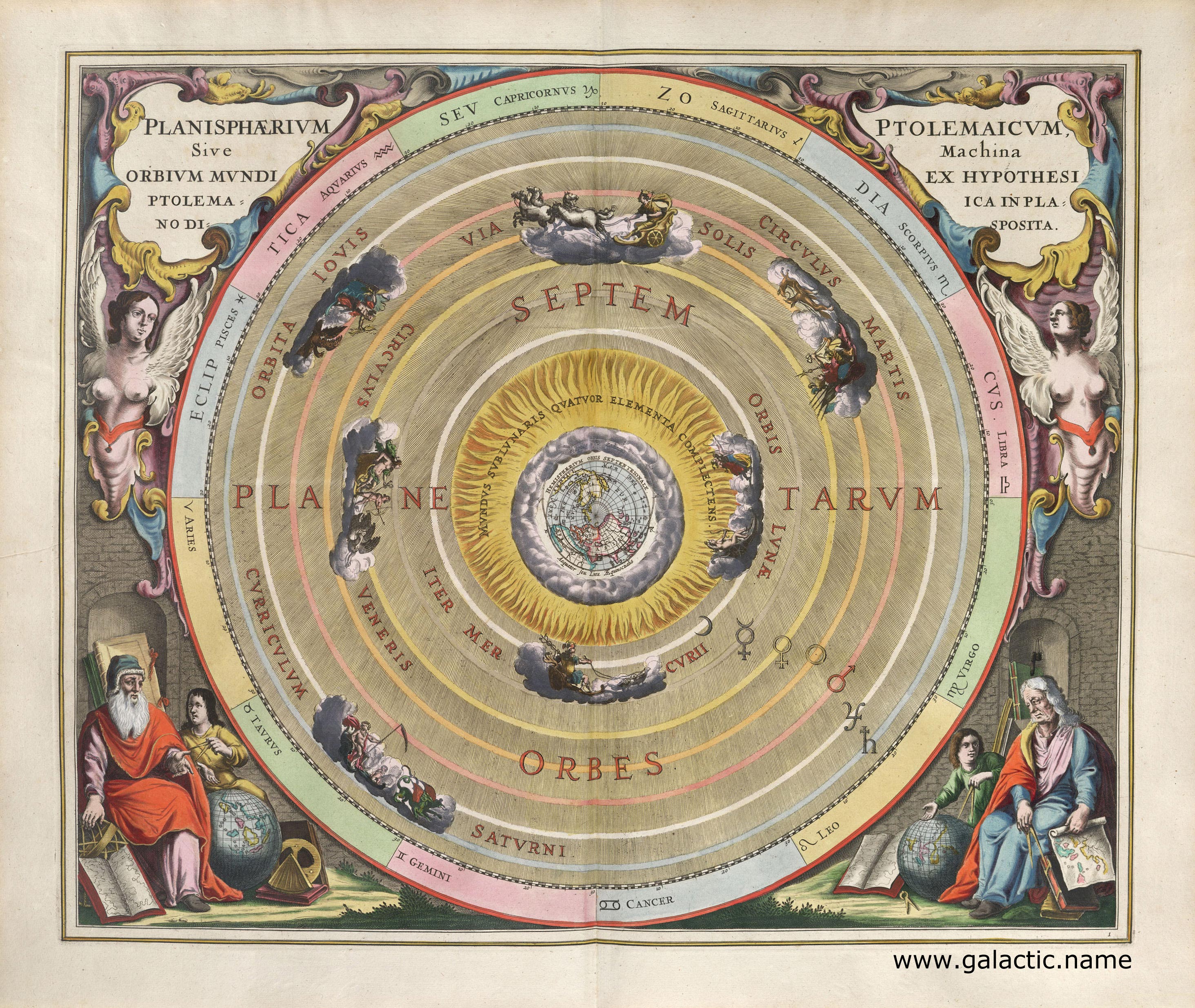 Гравюра - PLANISPHÆRIVM PTOLEMAICVM, Sive Machina ORBIVM MVNDI EX HYPOTHESI PTOLEMAICA IN PLANO DISPOSITA - The planisphere of Ptolemy, or the mechanism (i.e. the movements) of the heavenly orbits following the hypothesis of Ptolemy laid out in a planar view.